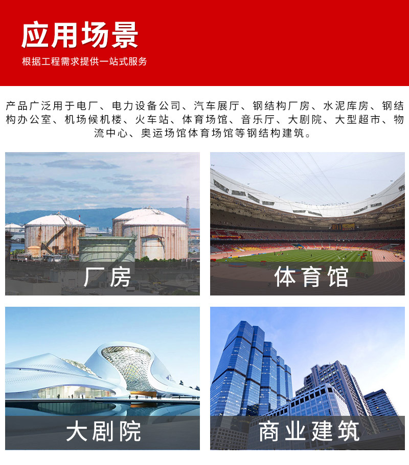 該型號彩鋼板的保溫材料主要有巖棉、玻璃纖維棉、聚苯乙烯和聚氨酯,這些材料的導(dǎo)熱系數(shù)低,使用這些材料可以使彩鋼板具有良好保溫和隔熱的功能,并有效保持活動房內(nèi)部溫度。用彩鋼板制作活動房,既保溫隔熱還非常環(huán)保,可以減少空調(diào)和暖氣的使用次數(shù),在降低資源浪費(fèi)的同時(shí)節(jié)約了成本。